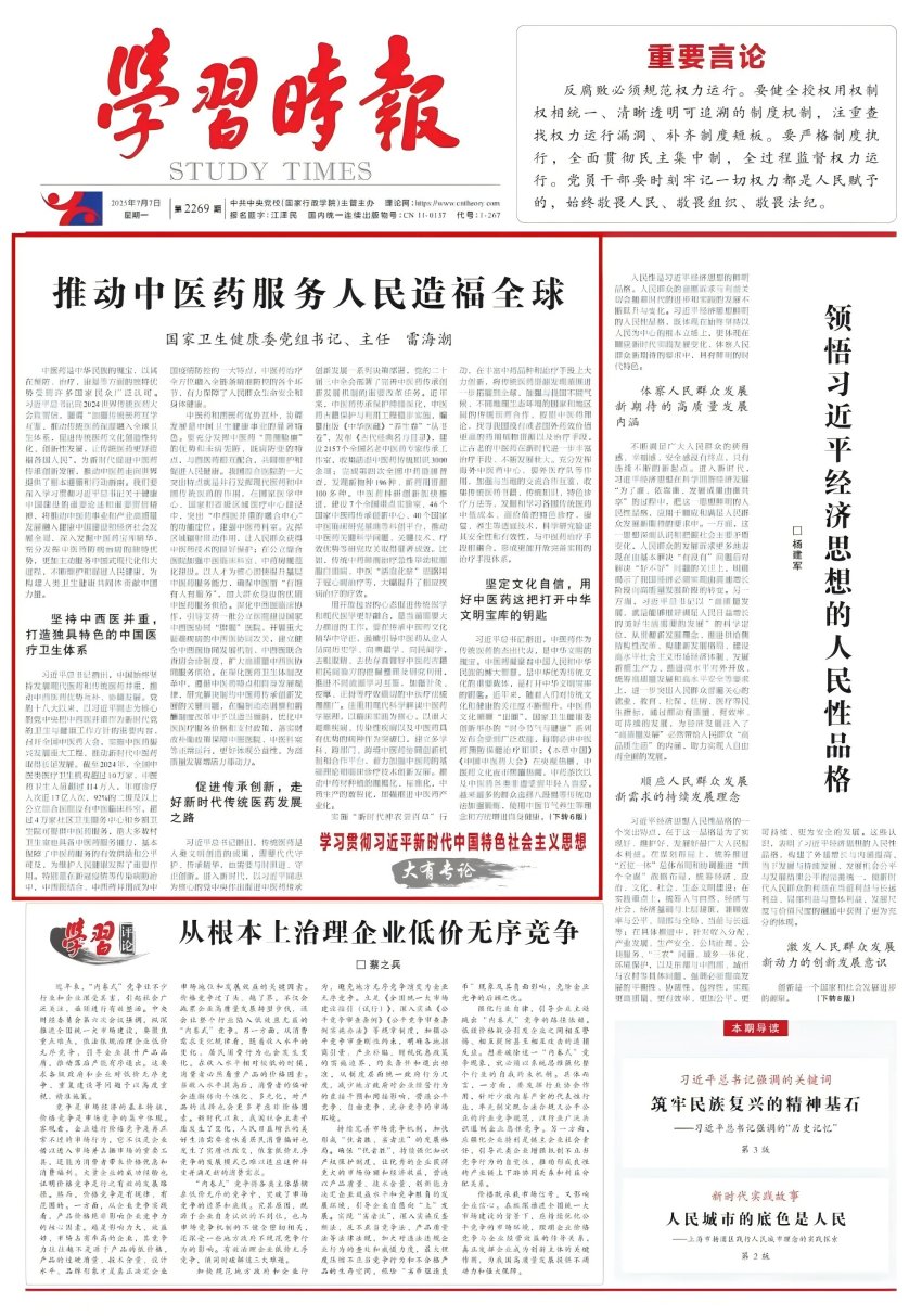 习近平总书记指出,传统医药是人类文明创造的成果,需要代代守护、传承精华,也需要与时俱进、守正创新。进入新时代,以习近平同志为核心的党中央作出促进中医药传承创新发展一系列决策部署,党的二十届三中全会部署了完善中医药传承创新发展机制的重要改革任务。近年来,中医药传承保护持续深化,中医药古籍保护与利用工程稳步实施,编纂出版《中华医藏》“养生卷”“丛书卷”,发布《古代经典名方目录》,建设2157个全国名老中医药专家传承工作室,收集活态中医药传统知识3000余项;完成第四次全国中药资源普查,发现新物种196种、新药用资源100多种。中医药科研创新加快推进,建设7个全国重点实验室、46个国家中医药传承创新中心、40个国家中医临床研究基地等科创平台,推动中医药关键科学问题、关键技术、疗效优势等研究攻关取得显著成效。比如,传统中药砷剂治疗急性早幼粒细胞白血病、中医“活血化瘀”思路用于冠心病治疗等,大幅提升了相应疾病治疗的疗效。