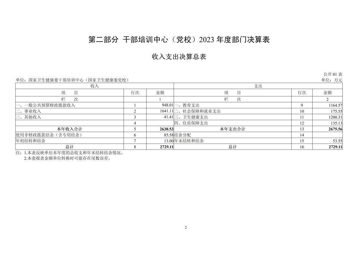 国家卫生健康委干部培训中心(国家卫生健康委党校)2023年度部门决算