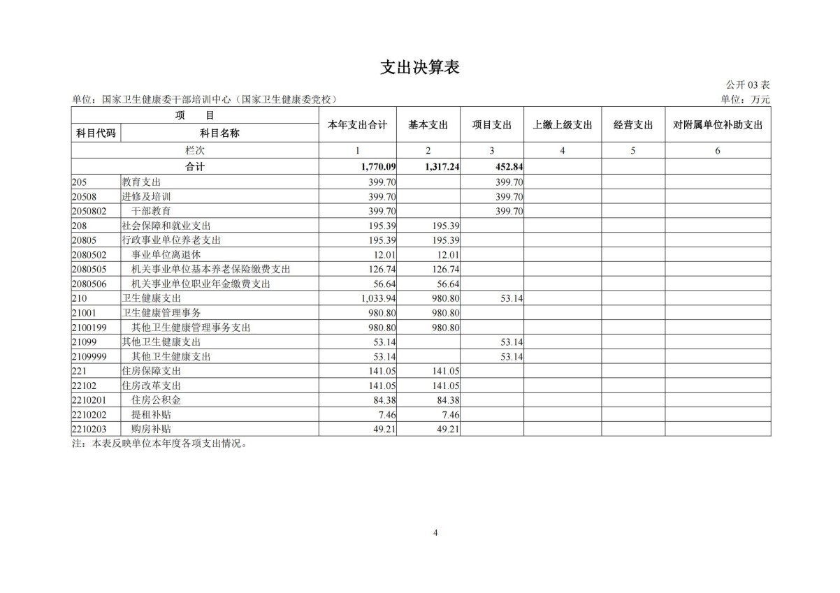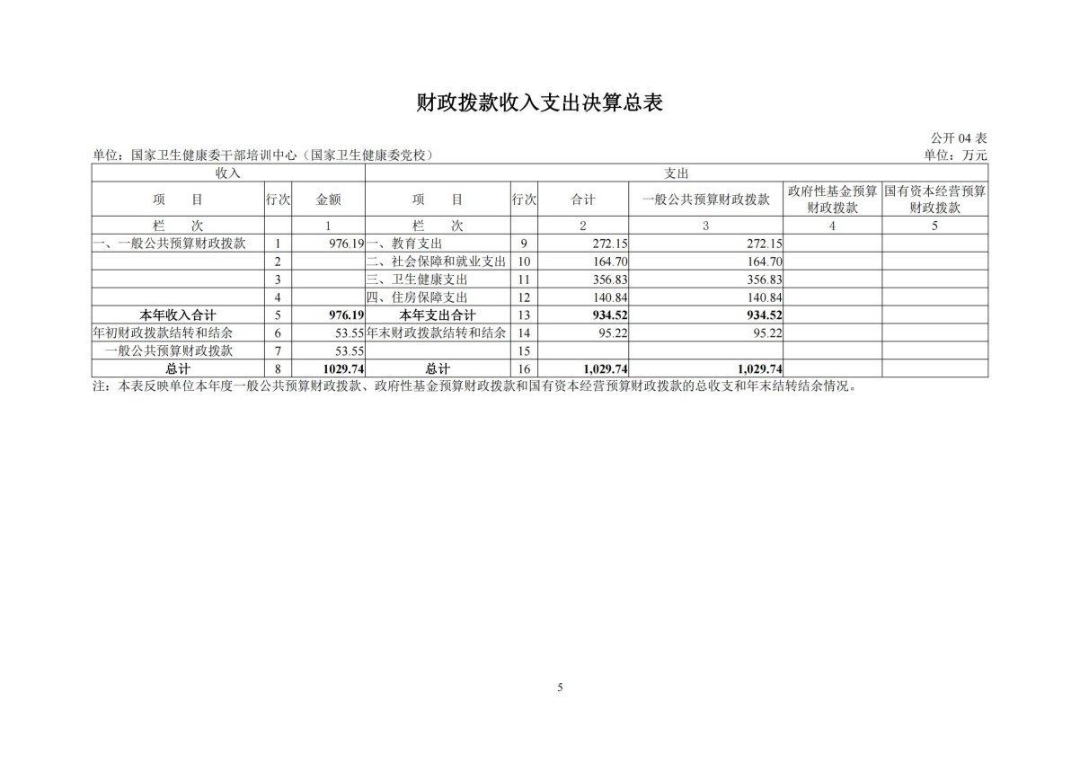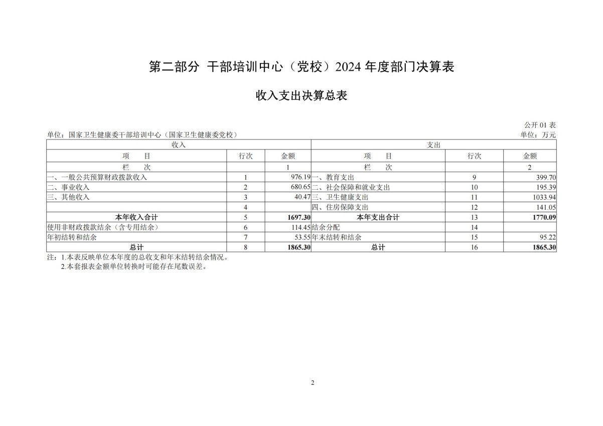 国家卫生健康委干部培训中心(国家卫生健康委党校)2024年度部门决算